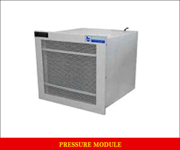 | This air module builds a positive pressure in the room when compared to the adjacent area. This pressure gradient prevents ingress of particles through door leaks or when the door is opened |